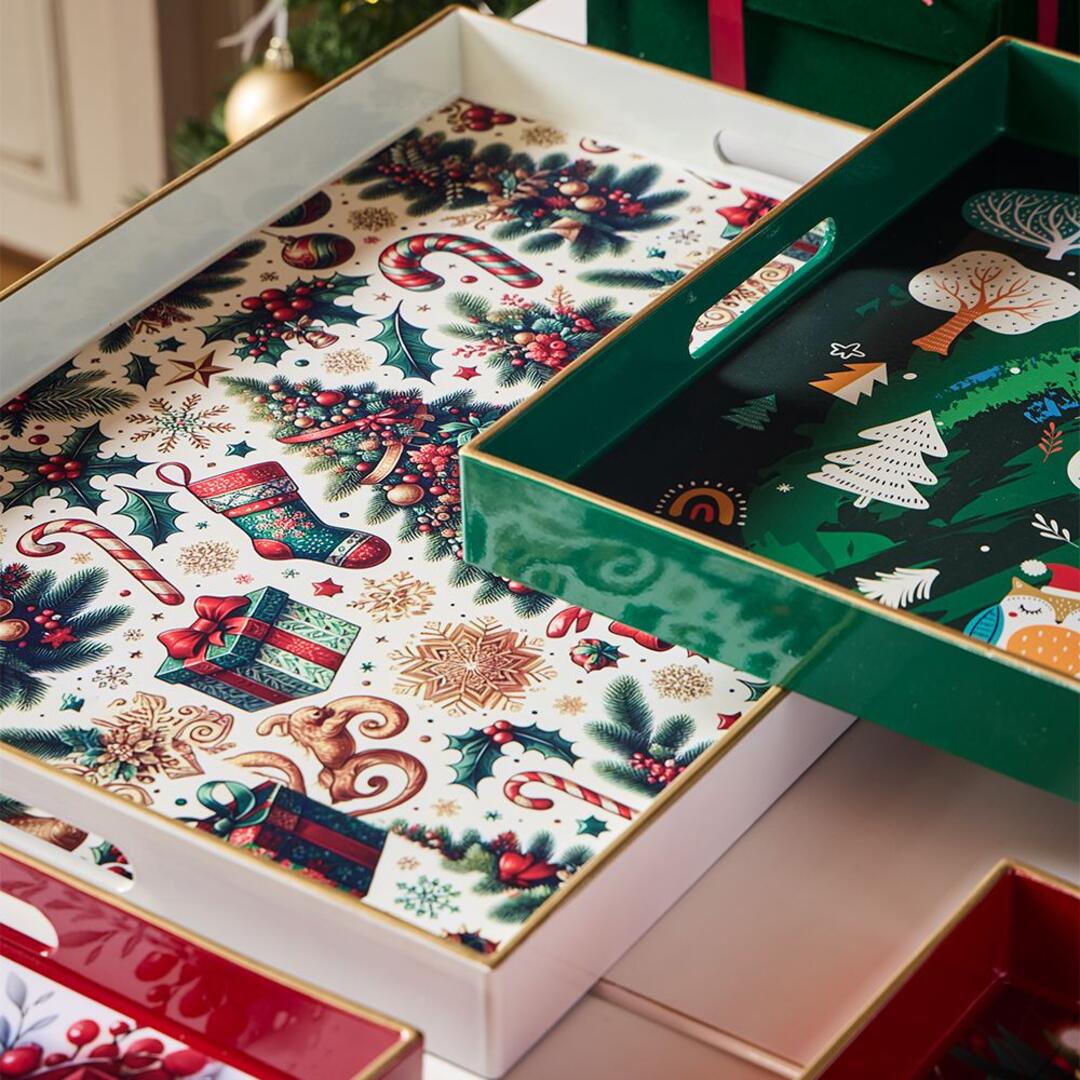 Rendi il tuo Natale ancora più speciale con i nostri vassoi natalizi decorativi. Perfetti per servire dolci, presentare antipasti o come centrotavola, questi vassoi aggiungono un tocco di eleganza e calore alla tua casa durante le festività.